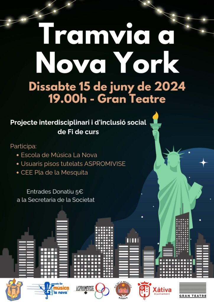 Baix el títol “Tramvia a Nova York”, la nostra Escola de Música finalitza el curs escolar amb un macro concert amb la participació de tot l’alumnat de l’escola. Aquest esdeveniment tindrà lloc el dissabte 15 de juny, a les 19 hores, al Gran Teatre de Xàtiva. Per poder gaudir de l’espectacle, podeu adquirir la vostra […]